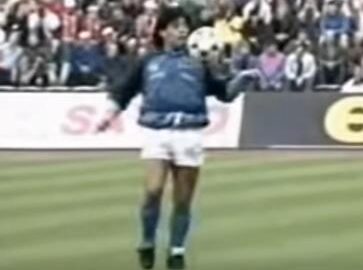 Fantasticul Maradona i-a făcut pe ceilalţi fotbalişti să îngheţe, în momentul în care jongla mingea pe ritmul melodiei „Live Is Life”