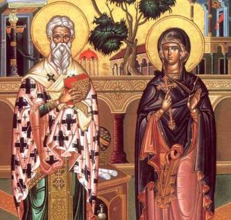 Undeva in secolul al III-lea d.Hr., in Antiohia traia o fecioara frumoasa, care se numea Iustina, nascuta din parinti pagani. Auzind intamplator propovaduirea unui diacon, a vrut sa invete mai multe de la el. Nu a indraznit sa-l caute, dar a mers in taina la biserica, unde a ascultat cuvintele lui Dumnezeu si a crezut in Hristos. In scurta vreme, Iustina i-a adus la credinta si pe parintii sai, iar apoi au fost botezati toti trei.